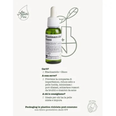 La Niacinamide + Zinco svolge inoltre un’importantissima azione di protezione e rinforzo della barriera cutanea andando a prevenire il fotoinvecchiamento e preservando una buona idratazione della pelle.