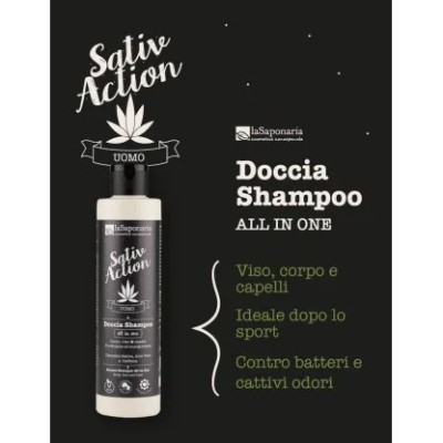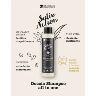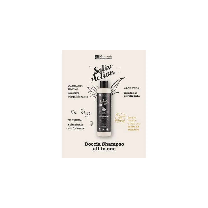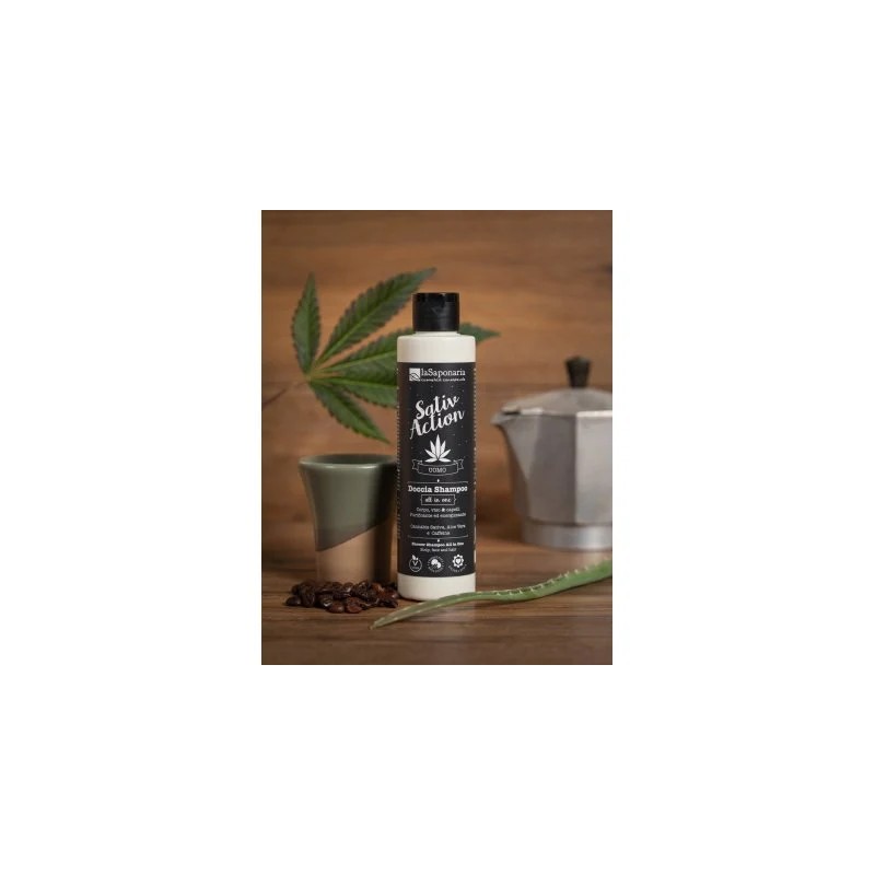 Doccia Shampoo per corpo, viso e capelli ad azione purificante ed energizzante a base di Cannabis Sativa, Aloe Vera e Caffeina