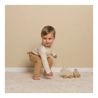 Questi coniglietti adorano esplorare la casa con te. Tira la corda e partiamo per un'avventura insieme! Gli animali da tirare sono realizzati in legno resistente e non si stancheranno mai di giocare. Incoraggerà il tuo bambino a camminare e lo aiuterà nello sviluppo motorio.