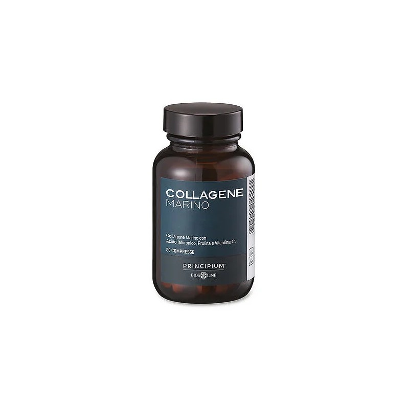 Principium Collagene Marino è un integratore alimentare che, grazie all’associazione di Collagene Marino di tipo 1 e Prolina, aiuta a migliorare l’elasticità della pelle, a ridefinire i contorni del viso e attenuare la visibilità delle rughe, conferendo al volto un aspetto più fresco e luminoso. La formula è arricchita da Acido Ialuronico a basso peso molecolare e Vitamina C, che contribuisce alla sintesi del collagene.