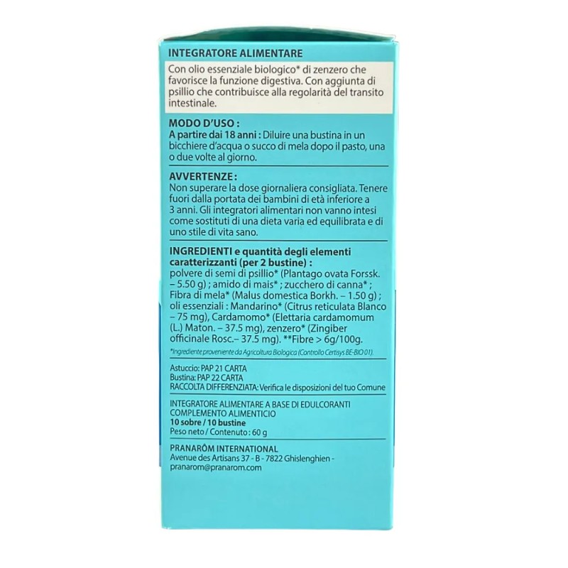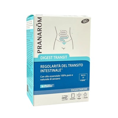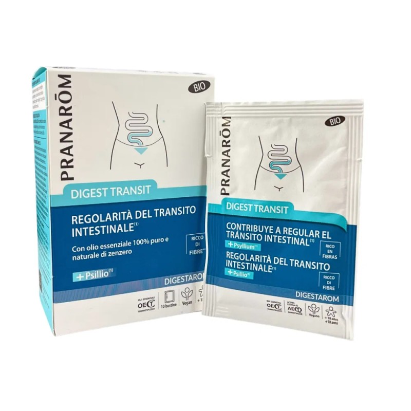 Pranarom Digest Transit Bio 10 bustine; Integratore alimentare in bustine a base di ingredienti naturali che favorisce un transito intestinale regolare e senza stress.
