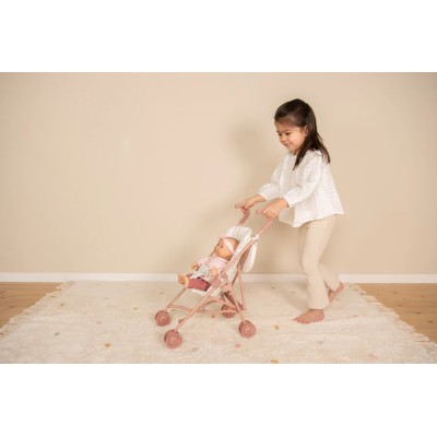 Dove ti porterà la tua immaginazione oggi? Metti a sedere la tua bambola o il tuo peluche preferito e lascia che il passeggino ti apra la strada verso una nuova avventura. I posti a sedere sono decorati con l'incantevole design White Meadows e la borsa abbinata sui manici fornisce spazio per gli accessori della bambola e il necessario per una passeggiata. La cinghia manterrà la bambola comodamente seduta durante le passeggiate. Il passeggino per bambole in metallo con telaio rosa, maniglie rosa e 4 ruote rosa è progettato per favorire il gioco fantasioso e coltivare il senso di responsabilità dei piccoli caregiver.