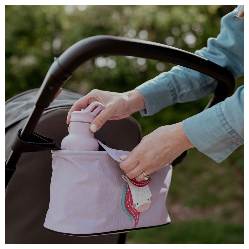 Con l'organizer per passeggino di Chompy il leone tenere a portata di mano tutto l'indispensabile per un bebè è facilissmo. La borsa è capiente e leggera, realizzata in un tessuto resistente. È, inoltre, dotata di due passanti per appenderla comodamente al passeggino e una chiusura in velcro che rende facilmente accessibile l'interno della borsa.
