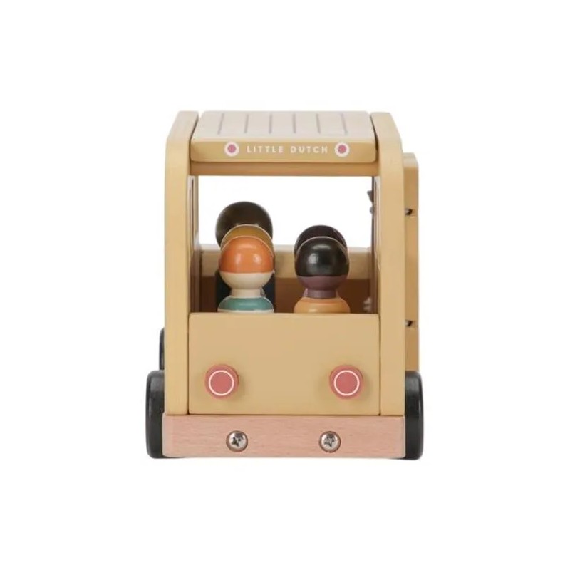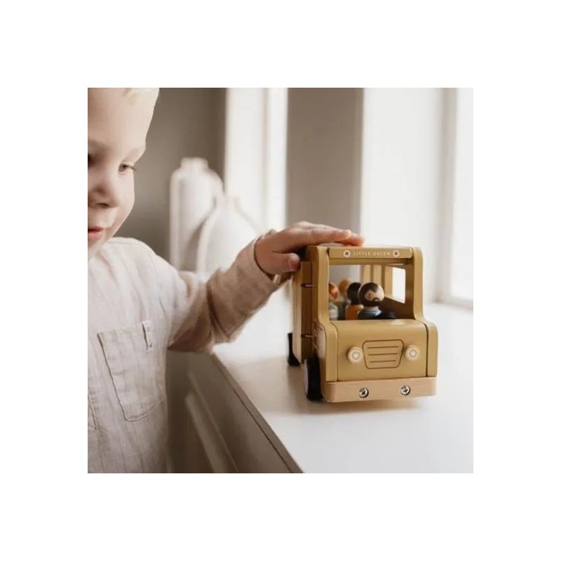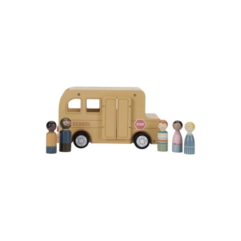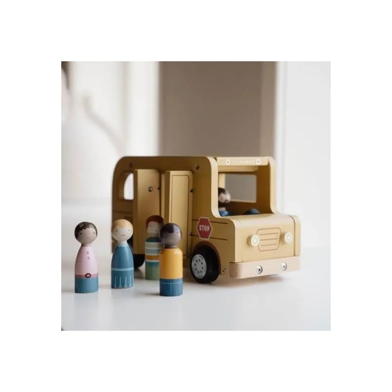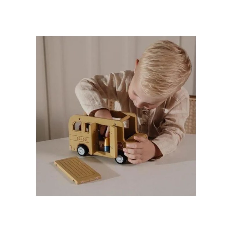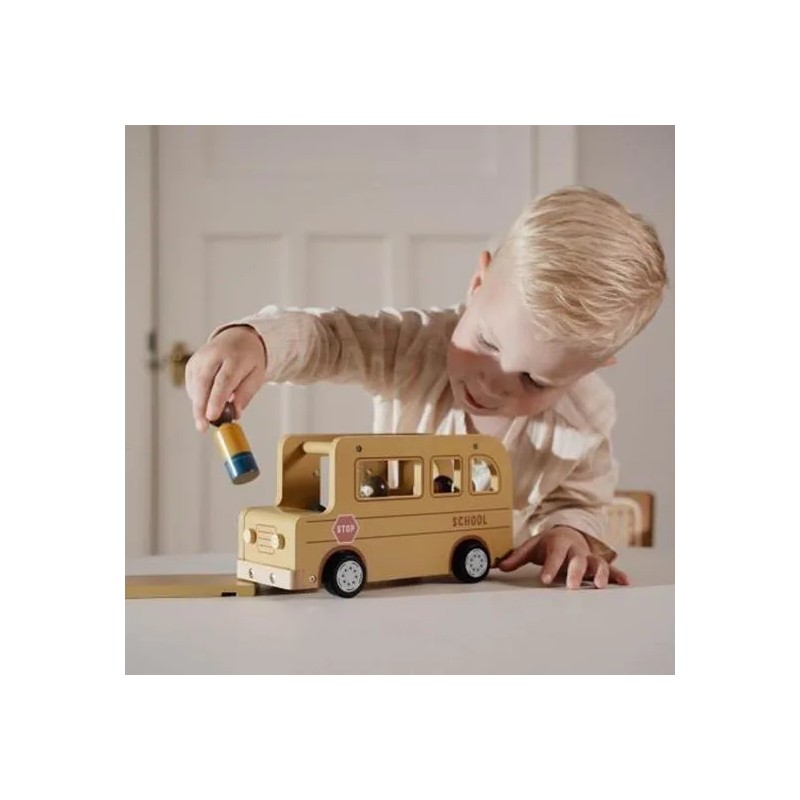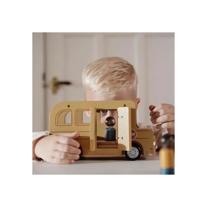 Lascia che le ruote di questo scuolabus girino e girino. Tutti i bambini sono seduti? Una volta che l'autista avvia il motore, puoi intraprendere un viaggio pieno di gioia e scoperta. Che tu stia navigando attraverso paesaggi urbani immaginari o facendo salire a bordo passeggeri immaginari, questo veicolo in legno ti guiderà ovunque tu voglia andare. Le ruote scorrevoli consentono al tuo piccolo di cavalcare senza sforzo sul pavimento, raccogliendo amici da ogni angolo della stanza. La porta e il tetto dello scuolabus in legno si possono aprire e i personaggi sono compatibili con la casa delle bambole e altri set da gioco come l'aereo e l'auto con roulotte. Lascia che il tuo bambino si goda il viaggio della narrazione con questo versatile set di giocattoli in legno.