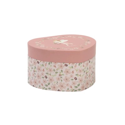 Questa scatola dei tesori incantata, decorata con una dolcissima fatina e splendidi fiori, offre tanto spazio per custodire gioielli e piccoli tesori preziosi. Basta girare la carica, e al momento dell’apertura la scatola suonerà una melodia incantevole, mentre una graziosa fatina danzerà davanti allo specchio.