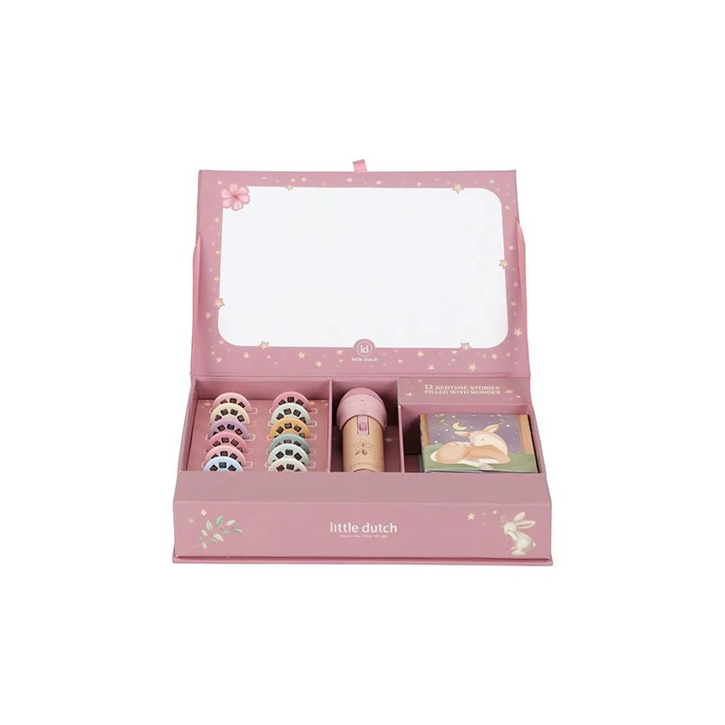 La torcia proiettore ha un robusto manico in legno e funziona a batterie, così i bambini possono portarla ovunque. Dopo l’avventura, puoi riporre facilmente la torcia e tutti gli accessori nella bellissima scatola inclusa. Perfetta per i piccoli esploratori che amano scoprire e vivere storie