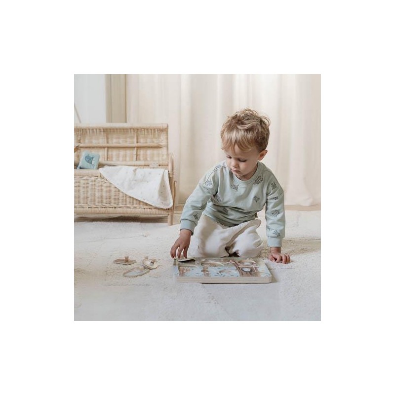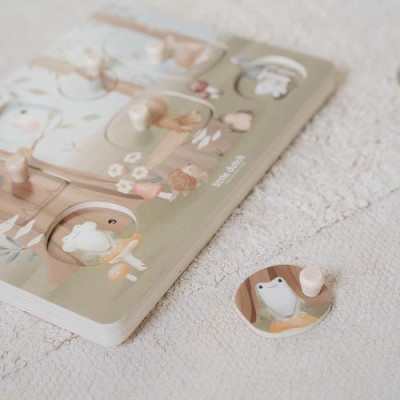 Questo puzzle con 7 pezzi raffiguranti animali, foglie e funghi aiuta a sviluppare la coordinazione occhio-mano e stimola il vocabolario del bambino. I sensori si attivano quando i pezzi vengono riposizionati