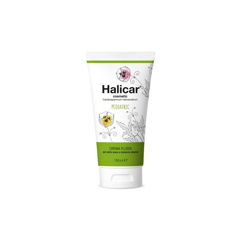 Halicar cosmetic in crema fluida, coadiuva la terapia idratando la pelle secca a tendenza atopica e particolarmente disidratata. Il 99% degli ingredienti sono di origine naturale. PH neutro, senza petrolati, profumo, parabeni e coloranti. Nichel tested.