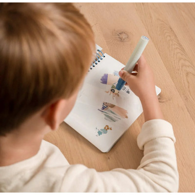 Il set include 5 robuste schede da colorare con Jim e i suoi amici in diversi scenari: sott’acqua, in fattoria, in spiaggia, in safari e perfino nello spazio. Grazie alla penna ricaricabile ad acqua, i bambini possono divertirsi a colorare infinite volte senza macchiarsi e senza bisogno di vernici o pennarelli.