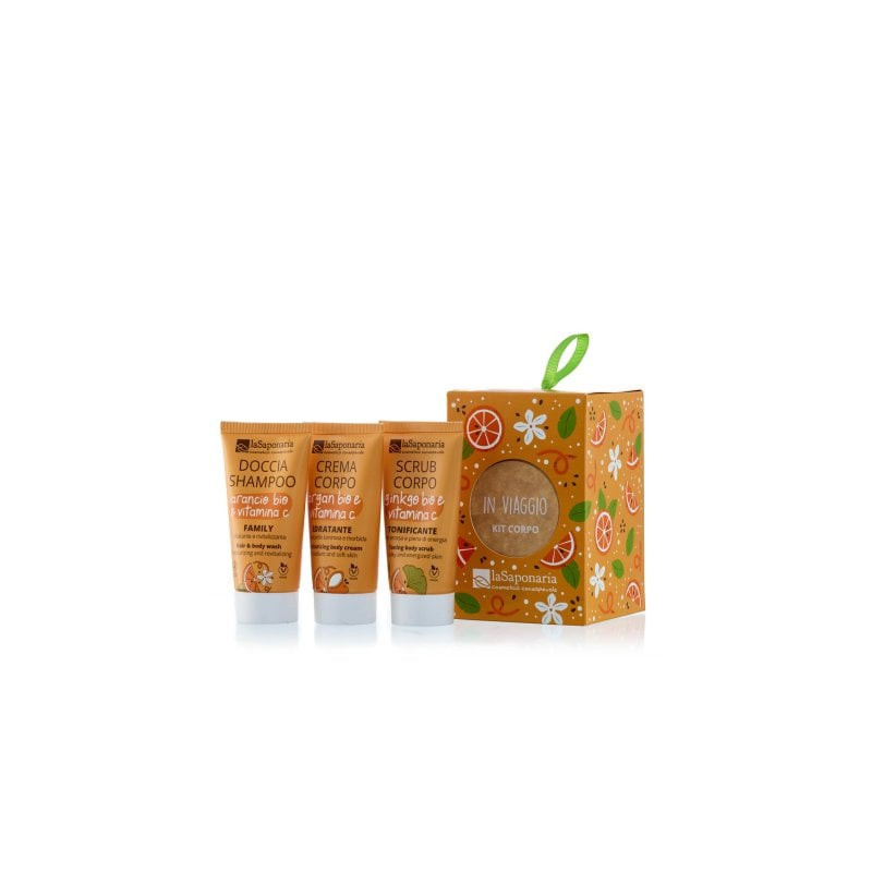 Crema corpo: Aqua, Aloe Barbadensis Leaf Juice*, Polyglyceryl-3 Rice Branate, Coco-Caprylate/Caprate, Caprylic/Capric Triglyceride, Pentylene Glycol, Cetearyl Alcohol, Glycerin, Limonene, Ascorbyl Glucoside, Tocopherol, Citrus Aurantifolia Peel Oil Distilled, Calendula Officinalis Flower Extract*, Oryza Sativa Powder*, Helianthus Annuus Seed Oil, Citrus Aurantium Dulcis Peel Oil*, Argania Spinosa Kernel Oil*, Xanthan Gum, Ethyl Lauroyl Arginate Hcl, Sodium Phytate, Potassium Hydroxide, Sodium Citrate, Terpinolene, Benzyl Alcohol, Pinene, Terpineol, Alpha-Terpinene, Citric Acid, Citral, Beta-Caryophyllene (*ingredienti da agricoltura biologica 24%. Ingredienti di origine naturale 99%.)