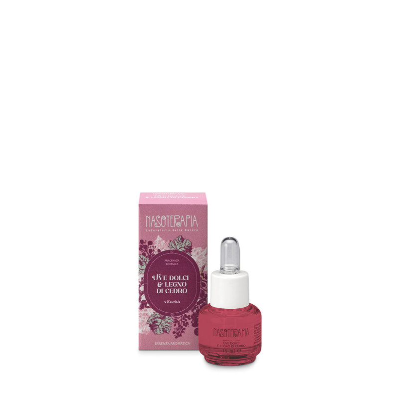 Un vivace e brioso bouquet di uve dolci, legni pregiati e note fruttate si sprigiona da questa essenza aromatica, realizzata a mano in Italia con cere vegetali e oli essenziali puri. La fragranza botanica Uve Dolci & legno di Cedro, studiata dai nostri maestri profumieri, è un delicato invito a immergersi nelle atmosfere autunnali, ricche di sentori di vendemmia, in una natura che cambia colore.