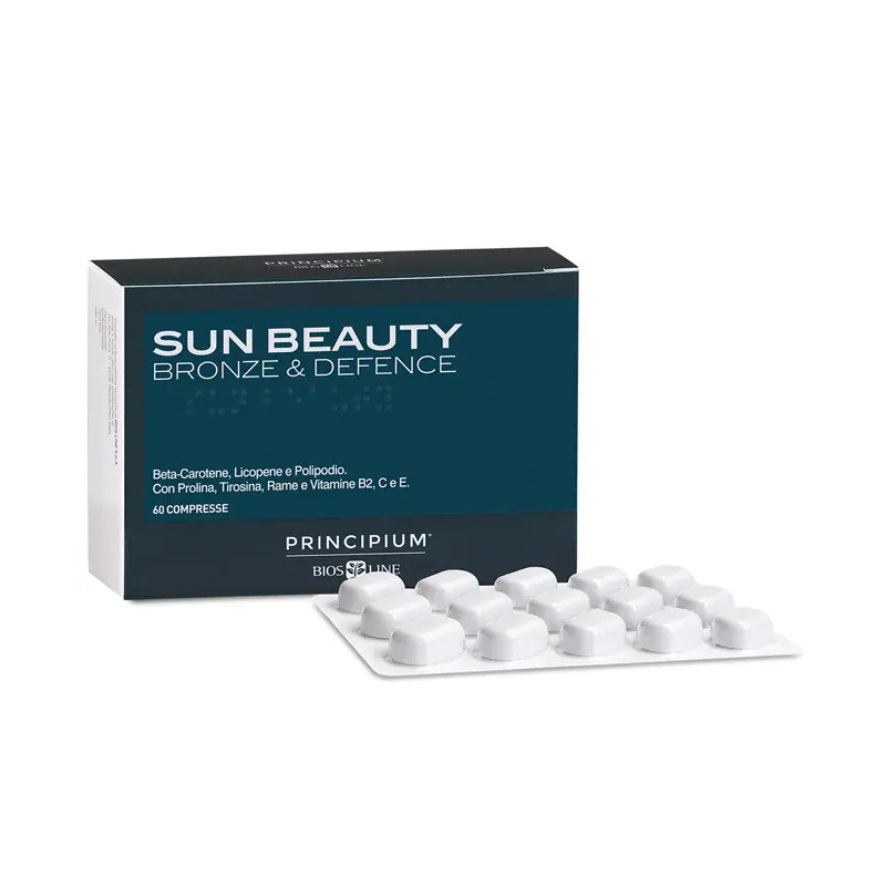Sun Beauty Bronze & Defence Principium Bios Line è un integratore formulato con estratti vegetali, vitamine, minerali ed aminoacidi, indicato per prepararsi all'esposizione solare, per prevenire la comparsa di eritemi solari, dopo l'esposizione solare per mantenere l'abbronzatura più a lungo.