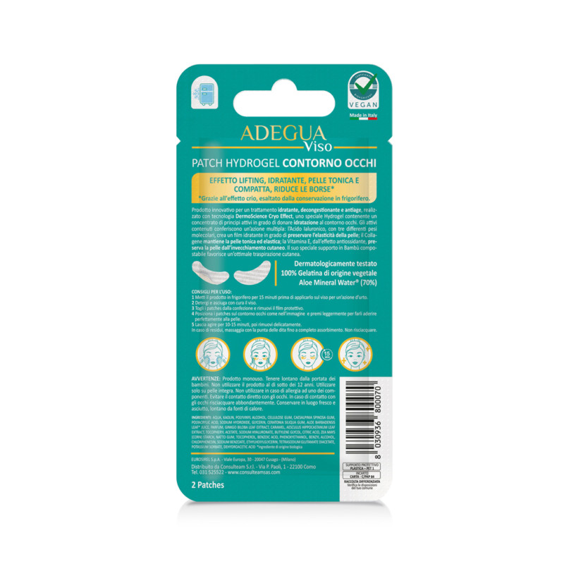 Prodotto innovativo per un trattamento idratante, decongestionante e antiage, realizzato con tecnologia DermoScience Cryo Effect, uno speciale Hydrogel contenente un concentrato di principi attivi in grado di donare idratazione al contorno occhi. Gli attivi contenuti conferiscono un’azione multipla: l’Acido Ialuronico, con tre differenti pesi molecolari, crea un film idratante in grado di preservare l’elasticità della pelle; il Collagene mantiene la pelle tonica ed elastica; la Vitamina E, dall’effetto antiossidante, preserva la pelle dall’invecchiamento cutaneo. Il suo speciale supporto in Bambù compostabile favorisce un’ottimale traspirazione cutanea.