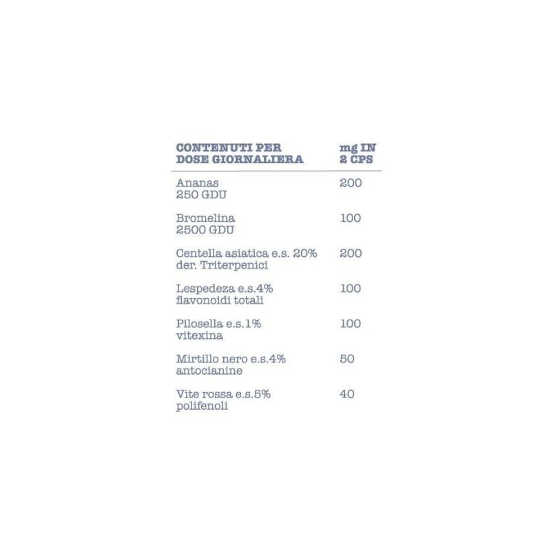 Contiene anche centella, che aiuta a stimolare il microcircolo e a contrastare gli inestetismi della cellulite, mirtillo nero che contribuisce al drenaggio dei liquidi corporei e dalla vite rossa, ad azione antiossidante e utile per alleviare la pesantezza alle gambe.